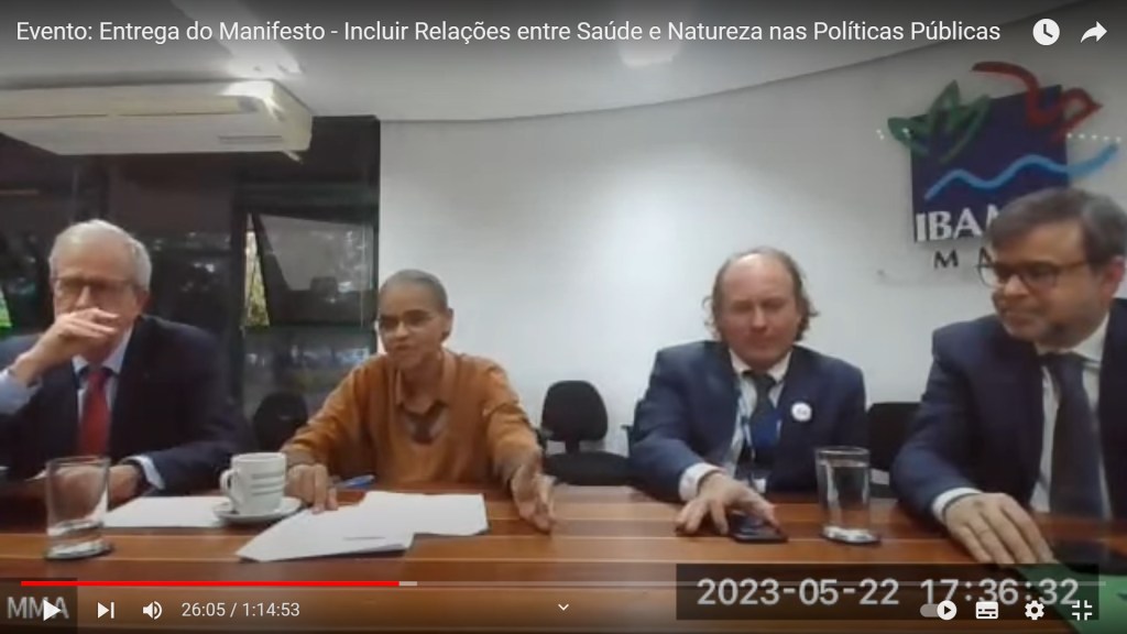 No dia 22 de maio de 2023, Dia Internacional da Biodiversidade, foi realizada online a primeira entrega do Manifesto da Rede Saúde e Natureza Brasil para representantes das entidades ambientais do governo federal.